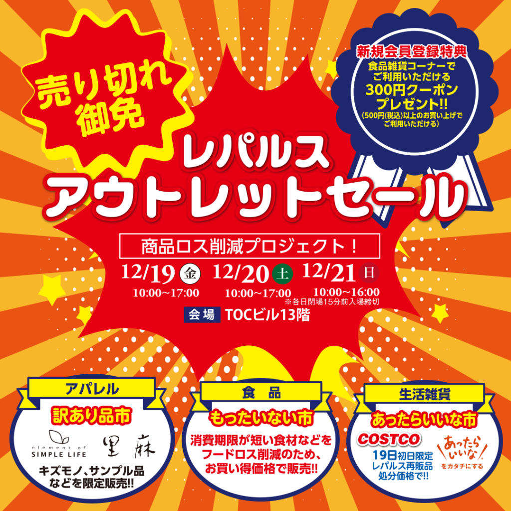 レパルス 年内最後のアウトレットセール(売り切れ御免)【五反田TOC】 開催!
